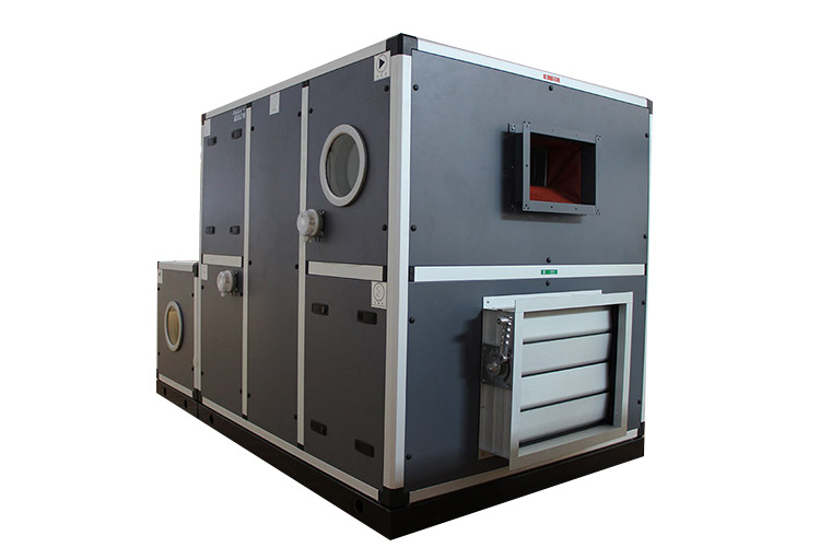 用于調節室內空氣溫濕度和潔凈度的設備。有滿足熱濕處理要求用的空氣加熱器、空氣冷卻器、空氣加濕器,凈化空氣用的空氣過濾器,調節新風、回風用的混風箱以及降低通風機噪聲用的消聲器??諝馓幚頇C組均設有通風機。根據全年空氣調節的要求,機組可配置與冷熱源相連接的自動調節系統。